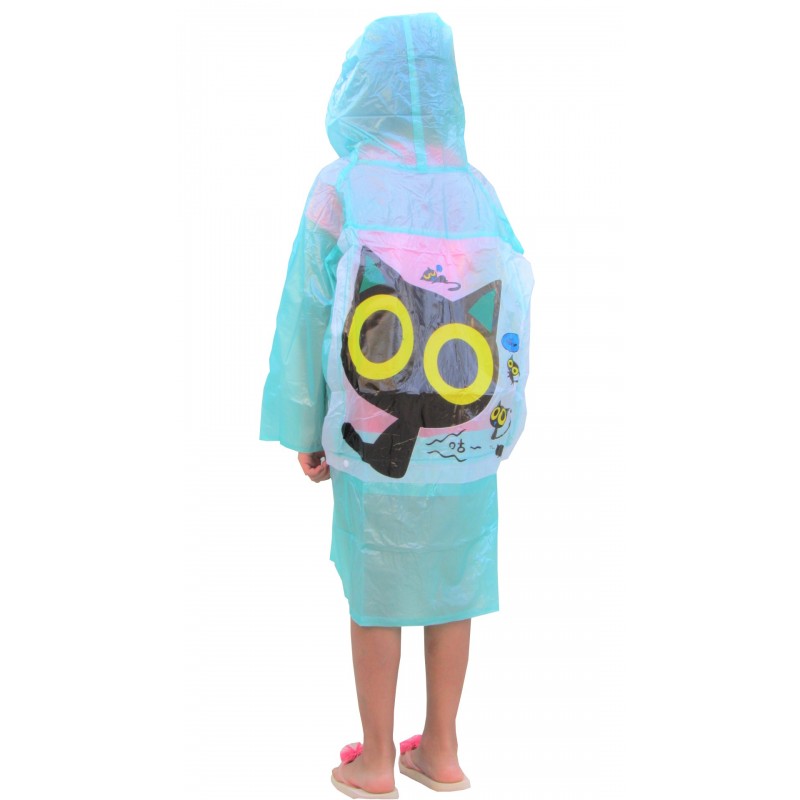 Our Jellybean Green raincoat features a hood and a fun cat cartoon. Comes complete with a waterproof bag for easy and safe storage.